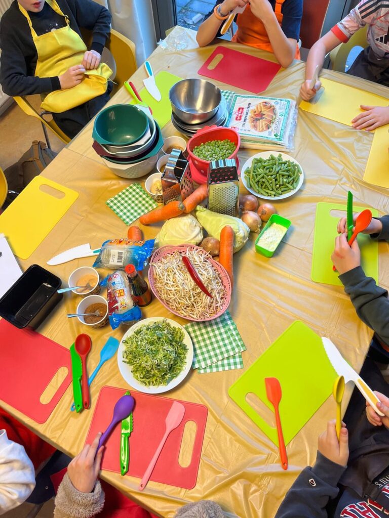- Elke dinsdagmiddag volgen de kinderen één kookworkshop van 1,5 uur.